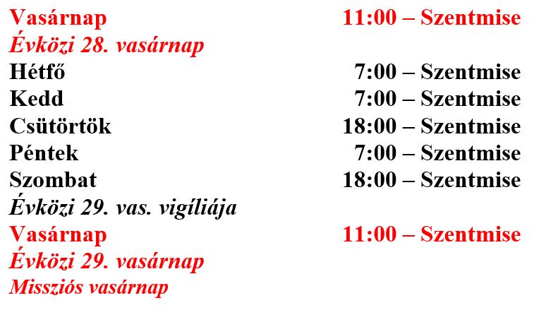 A miserend az alábbiak szerint alakul az október 12. – október 19. közötti időszakban a karcagi Szent István király-templomban.