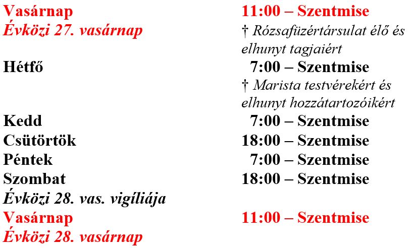 A miserend az alábbiak szerint alakul az október 5. – október 12. közötti időszakban a karcagi Szent István király-templomban.