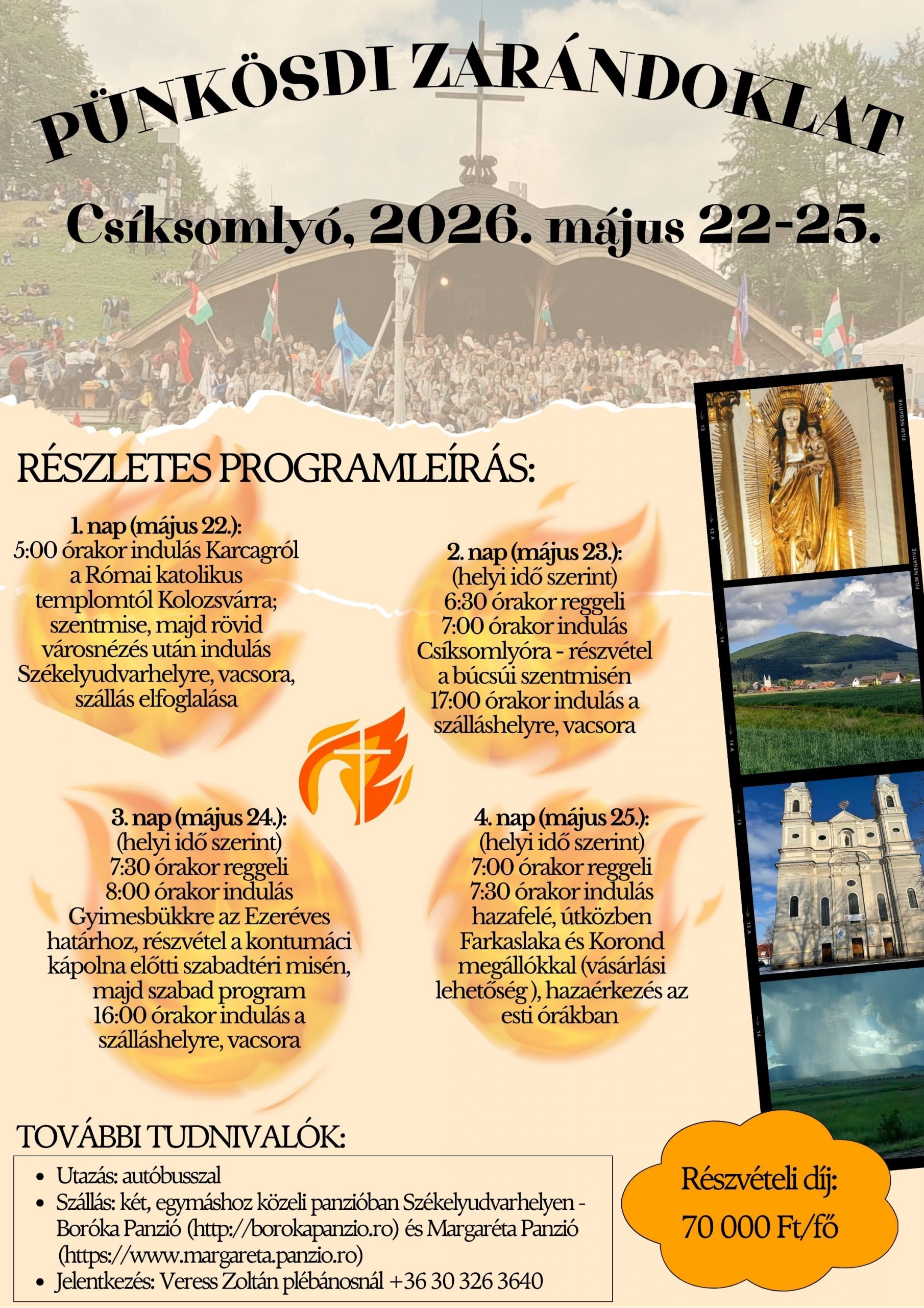 A zarándoklat időpontja 2026. május 22-25., lelkivezetője Veress Zoltán, karcagi plébános.