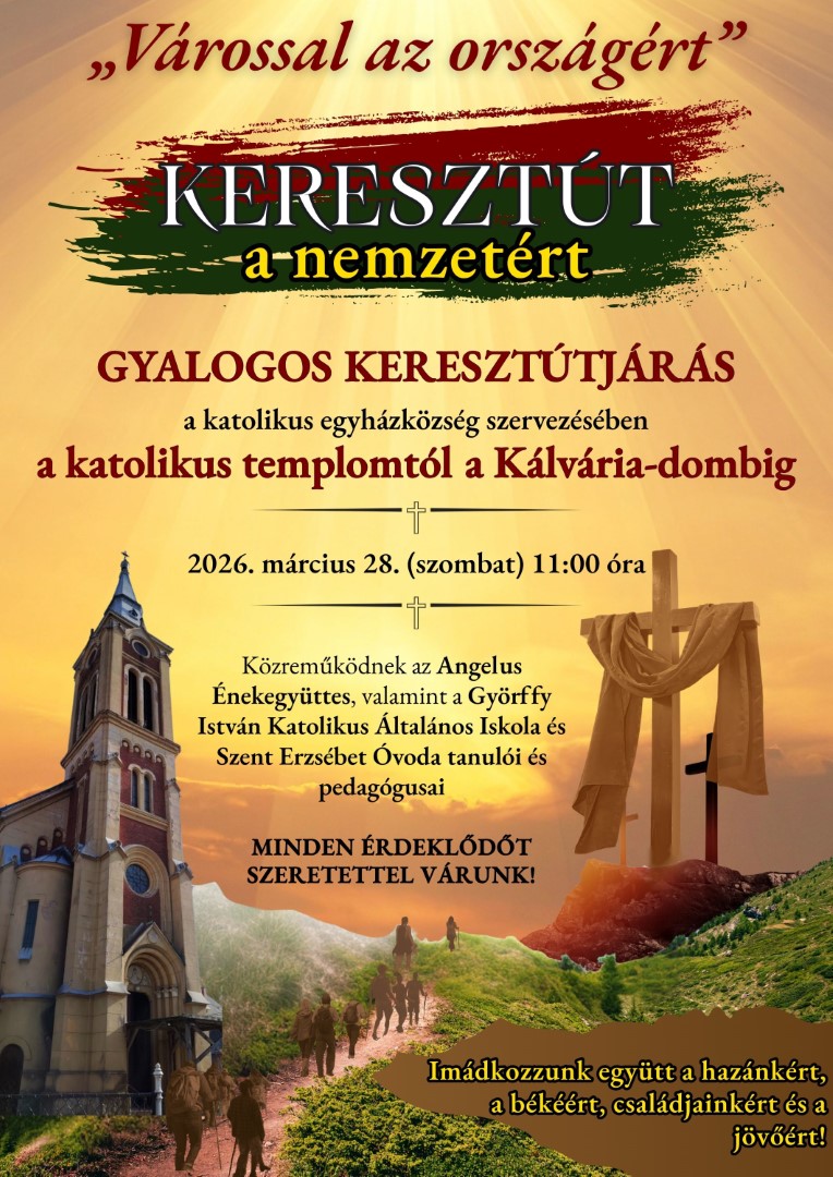 Szeretettel várunk minden kedves érdeklődőt 2026. március 28-án 11:00 órára a karcagi római katolikus templomhoz a városi gyalogos keresztútjárásra, hogy együtt imádkozzunk a hazánkért, a békéért, családjainkért és a jövőért, s együtt részesedjünk Krisztus keresztjében.