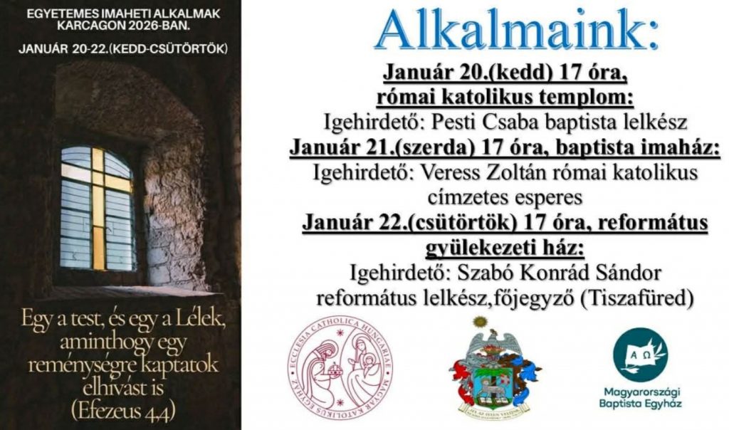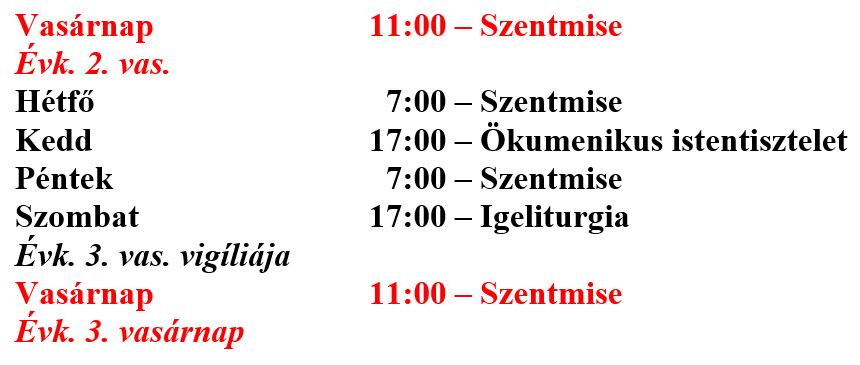 Szentmisék rendje Kunmadarason: – január 4-én (vasárnap) 9:00 órakor – január 11-én (vasárnap) 9:00 órakor