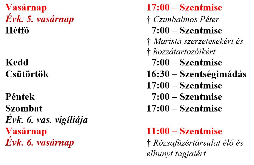 A miserend az alábbiak szerint alakul a január 4. – január 11. közötti időszakban a karcagi Szent István király-templomban.