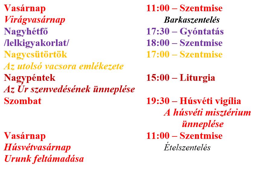 A miserend az alábbiak szerint alakul a március 29. – április 05. közötti időszakban a karcagi Szent István király-templomban.